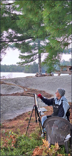 The Memquisit Plein Air painting workshop started off with some cooler temperatures and drizzle but warmed over the following days our weather improved. What’s a plein air workshop without “some rain”? |