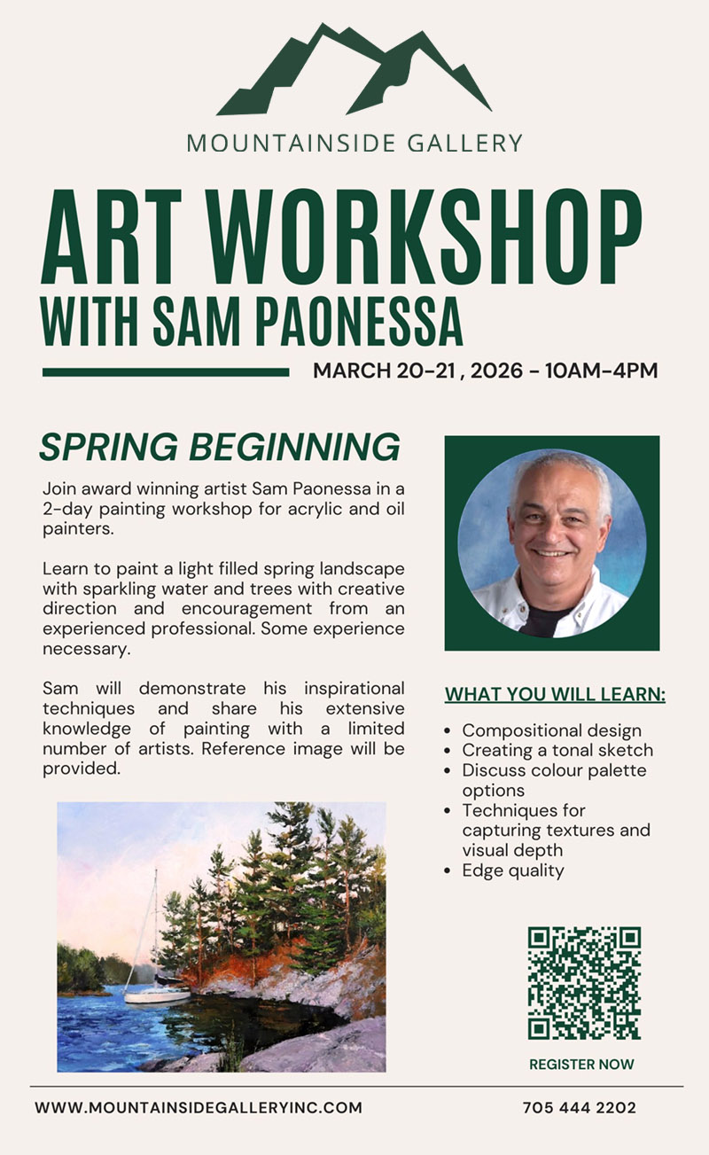 Sam Paonessa is a professional, award winning artist who has enjoyed a creative career for over 40 years. His interest remains with plein air landscapes and he is a founding member of Plein Air Canada.