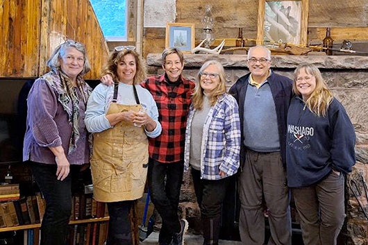 When the weather gets unpredictable and temperatures dipped, we could resort to Fireside Plein Air. It was always warm with this cozy group; (left to right) Denyse LaRose, Doris Anest, Beverly Topping, Donna Dooher, Me, Beth Chapman. |