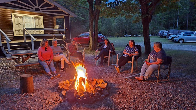 After a long day painting, the girls share haunting plein air tales around the campfire. |