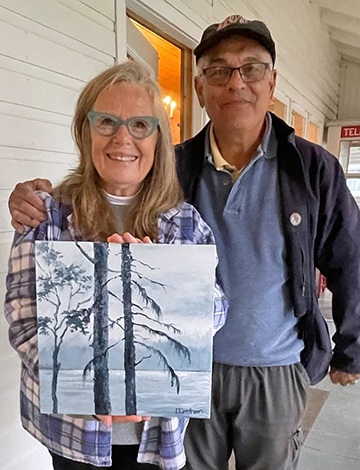 Stephen Burke (Burkey) and his wife Anne Marvin made the trip all the way from Delaware. Burkey quite content with his effort at his easel. He even brought his fishing rod, a perfect holiday for one who loves painting and fishing! Thankfully he waited to fish after the demo! I spared the fish puns but the day was fin-tastic!