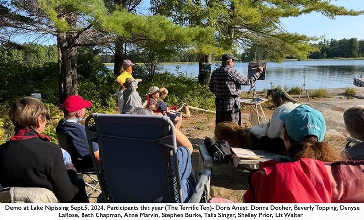 September is the month that I have a plein air painting workshop in beautiful Lake Nipissing based at Memquisit Lodge. A little gem that my wife and I enjoy vacationing at since 2011. Some of their patrons have been returning for more than 40 years! This year there were 10 participants from mostly Toronto and one couple from Delaware. The Terrific Ten!