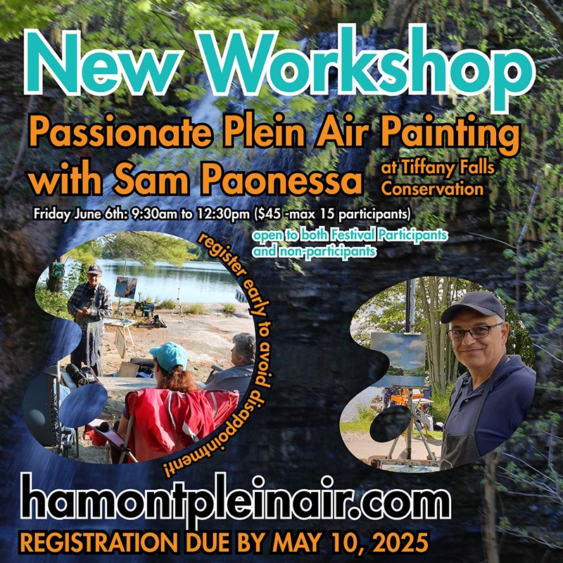 Following a highly successful and creative Summer workshop, come and join award winning plein air artist and instructor, Sam Paonessa, for a 1-day plein air workshop at the scenic Edwards Gardens in East Toronto this Fall. This workshop is for painters who are intermediate to advanced skill and are recommended to have some outdoor painting experience, open to any paint medium students wish to work in.